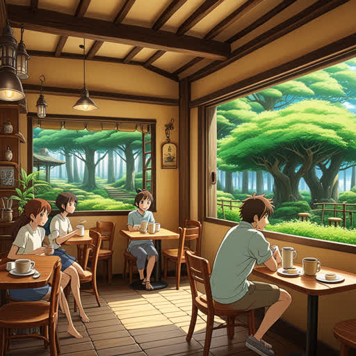 Once upon a time, a tired artist was searching for inspiration. He wandered through the streets until he arrived at a quiet 'cafe'. As he entered, he was greeted by the rich aroma of coffee and the warmth of the place. He sat in a corner, drank a hot cup of coffee, and felt his thoughts begin to gather. This cafe was the place that inspired the artist to paint his most beautiful works, forever linking his name with this charming coffee shop.