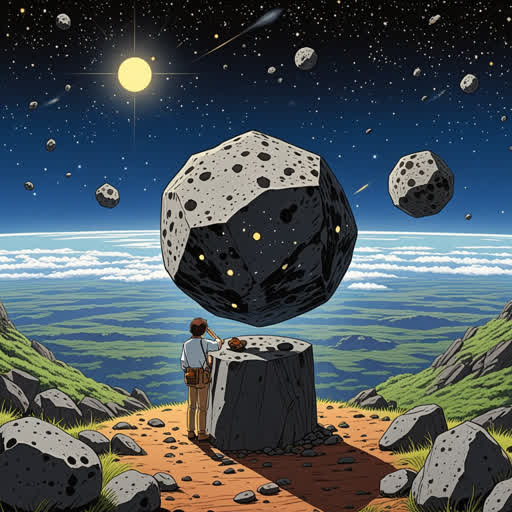 In ancient times, when the universe was still gathering its matter, a small 'cosmic gem' fell from the sky. It didn't glitter like a diamond, but within it, it carried the seeds of the past. This 'treasure' was a special meteorite, which scientists call a *chondrite*. This chondrite was filled with tiny, round grains, resembling lentils or solidified dewdrops. Each grain was a silent witness to the early days of stars and planets. Imagine that every *chondrite* is like a time capsule, carefully preserved, holding within its folds the secrets of the original matter that formed our world. When a scientist discovered such a meteorite, they felt as if they had found an ancient message from the dawn of existence, telling them how everything in our vast universe came to be.