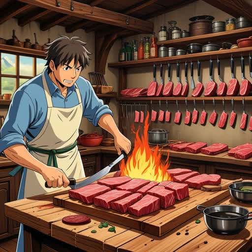 In a faraway forest, there lived a strong lumberjack named 'Abboud'. Every morning, he would carry his axe and go to the trees. When he found a large tree, he would start to 'chop chop' with his axe, cutting the branches first and then the tree trunk with strength and determination. The sound of the axe 'chop' echoed everywhere, and each 'chop' brought him closer to finishing his work. In the evening, he would return home to find his wife had prepared delicious 'lamb chops' for dinner, which she meticulously cut before cooking. Thus, his entire life revolved around 'chop', whether in the forest or in the kitchen.