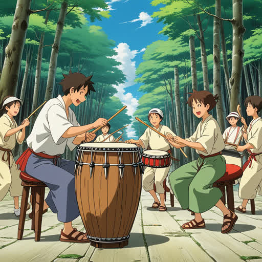 كان هناك ولدان صغيران، علي وأحمد، يحبان الموسيقى. في يوم من الأيام، وجد علي 'طبلة' (drum) قديمة في المنزل. بدأ يضرب عليها بقوة، وصوت 'درم درم' ملأ الغرفة. انضم إليه أحمد، وبدأ 'يدق' (drum) إيقاعًا خاصًا به. معًا، استمتعا بالعزف على 'الطبول' (drums) وأحسا بالسعادة تغمر قلبيهما.