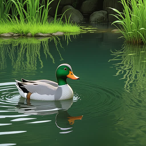 مثال: A duck swims gracefully on the pond. (بطة تسبح برشاقة في البركة.) -