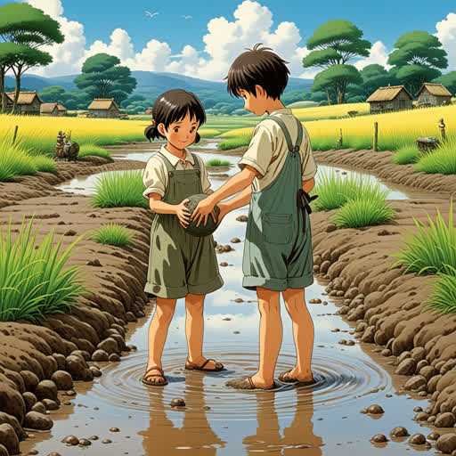 There once was a little frog named Froggie. Froggie loved to play in the **mud**. One day, it rained so heavily that the whole garden turned into a small lake of **mud**. Froggie jumped in happily, diving into the sticky **mud**, enjoying the coolness. But when he tried to jump out, his little feet were stuck. A wise tortoise came by and said, 'Froggie, don't worry! **Mud** can be sticky, but it's part of nature.' The tortoise stretched its neck and gently pushed Froggie until he was free from the **mud**. Froggie learned that **mud** can be fun, but it also requires a little caution.