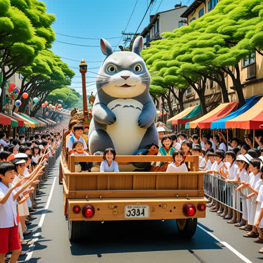 تخيل شارعًا واسعًا، تصطف على جانبيه الجماهير المتحمسة، بينما تمر فرق موسيقية ومركبات مزينة وشخصيات ترتدي أزياء براقة. المشهد مليء بالحركة والألوان والاحتفال، تذكرك بـ 'parade' كاحتفال عام مبهج.