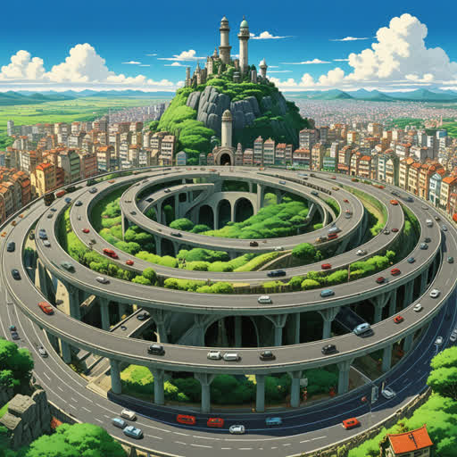 There was a bus driver named Saeed, who loved direct routes. But one day, he had to go through a new road full of **roundabout**s. Every time he reached a roundabout, he had to take a wide turn. Once, a lady stopped him and asked for the shortest way, but he gave her **roundabout** indirect instructions because he had to describe multiple paths around those many traffic circles. In the end, Saeed learned that life sometimes takes us on roundabout paths before we reach our destination.