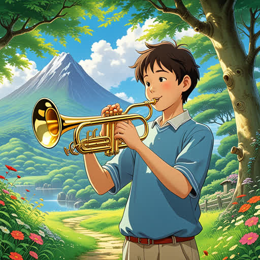 كان هناك في مملكة بعيدة، 'ترومبيتر' (عازف بوق) شاب اسمه سليم. كل صباح، كان سليم يقف على أعلى برج في القلعة ويعزف بوقه بصوت عالٍ وواضح لإيقاظ المدينة وإعلان بدء يوم جديد. لم يكن سليم مجرد عازف، بل كان أيضًا 'ترومبيتر' لأخبار الملك، ينشر القرارات الهامة ويعلن عن الاحتفالات. صوته الجهوري كان يعرفه الجميع، وكان رمزًا للأخبار السارة أو التحذيرات الوشيكة. ذات يوم، عزف سليم لحنًا جديدًا، ليس لإعلان خبر، بل لدعوة الناس للاحتفال بيوم السلام، مما جعل منه أكثر من مجرد عازف، بل بوق الأمل والوحدة.